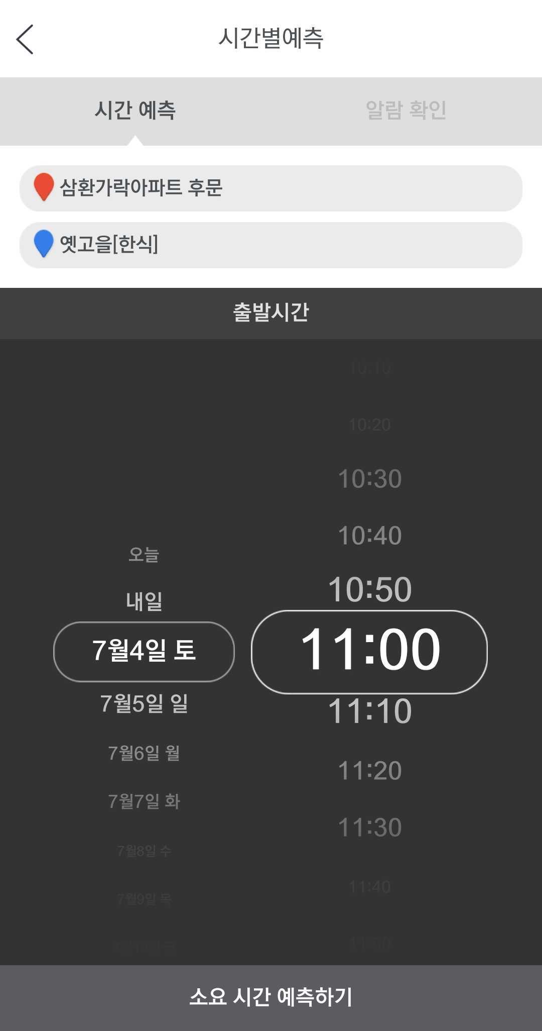 ํฐ๋งต ์ดํ์ ๋ฉ์ธ์์ ์๊ฐ๋ณ ์์ธก์ ์ ํํ๋ฉด ์๋์ ๊ฐ์ด ์ถ๋ฐ ๋ ์ง์ ์๊ฐ์ ๋ณ๊ฒฝํ ์๊ฐ ์์ด์!!