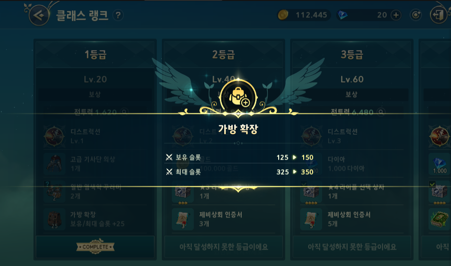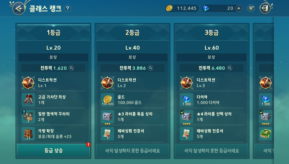 ๋ฑ ํด๋์ค ๋ญํฌ 20๊น์ง ํค์ฐ๋ฉด 1๋ฑ๊ธ ์์น์ผ๋ก ์ต๋ ์ฌ๋กฏ +25!!!!!!