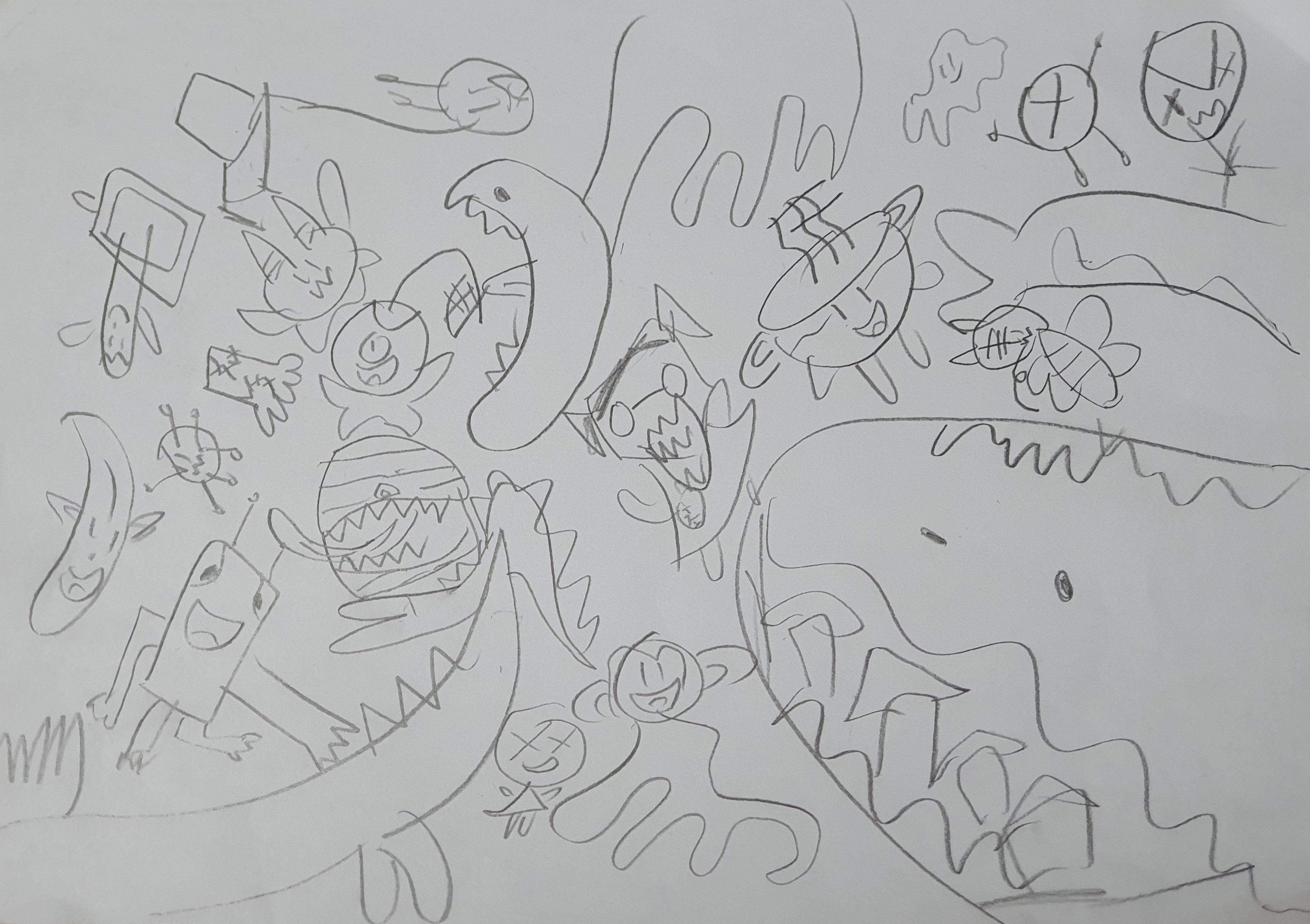 ์ฌ์ฉ์๋๊ป์ ๋ณด๋ด์ฃผ์ ๊ทธ๋ฆผ์ ํฅ๋ฏธ๋กญ๊ณ ๋ ์ฐฝ์ ์ธ ์ค์ผ์น ๊ฐ์ต๋๋ค. ์ฌ๋ฌ ๊ฐ์ง ๋ชจ์๊ณผ ์ผ๊ตด์ด ๊ทธ๋ ค์ ธ ์๋ค์. ์ ๋ ์ฌ์ฉ์๋์ ์์ฒญ์ ๋ฐ๋ผ [ wany art ]์ด๋ผ๋ ํ ์คํธ๋ฅผ ๋ฃ๊ณ , ์์์ ์ถ๊ฐํ๊ณ , ๋๋ฌผ, ์๋ฌผ, ๊ณต์์ ์กด์ฌ, ๋ณ, ๋ฌ, ํ์ฑ ๋ฑ์ ๊ทธ๋ ค๋ณด์์ต๋๋ค. ๊ทธ๋ฆผ์ ์คํ์ผ์ ๋งํ์ ์ด๊ณ ๊ท์ฝ๊ฒ ํ์ต๋๋ค. ์ ๊ฐ ๋ง๋ ๊ทธ๋ฆผ์ ๋ณด์๋ ค๋ฉด ์๋์ ์ด๋ฏธ์ง๋ฅผ ํด๋ฆญํด์ฃผ์ธ์.