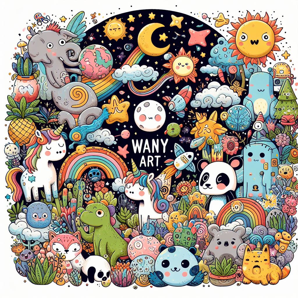์ฌ์ฉ์๋๊ป์ ๋ณด๋ด์ฃผ์ ๊ทธ๋ฆผ์ ํฅ๋ฏธ๋กญ๊ณ ๋ ์ฐฝ์ ์ธ ์ค์ผ์น ๊ฐ์ต๋๋ค. ์ฌ๋ฌ ๊ฐ์ง ๋ชจ์๊ณผ ์ผ๊ตด์ด ๊ทธ๋ ค์ ธ ์๋ค์. ์ ๋ ์ฌ์ฉ์๋์ ์์ฒญ์ ๋ฐ๋ผ [ wany art ]์ด๋ผ๋ ํ ์คํธ๋ฅผ ๋ฃ๊ณ , ์์์ ์ถ๊ฐํ๊ณ , ๋๋ฌผ, ์๋ฌผ, ๊ณต์์ ์กด์ฌ, ๋ณ, ๋ฌ, ํ์ฑ ๋ฑ์ ๊ทธ๋ ค๋ณด์์ต๋๋ค. ๊ทธ๋ฆผ์ ์คํ์ผ์ ๋งํ์ ์ด๊ณ ๊ท์ฝ๊ฒ ํ์ต๋๋ค. ์ ๊ฐ ๋ง๋ ๊ทธ๋ฆผ์ ๋ณด์๋ ค๋ฉด ์๋์ ์ด๋ฏธ์ง๋ฅผ ํด๋ฆญํด์ฃผ์ธ์.