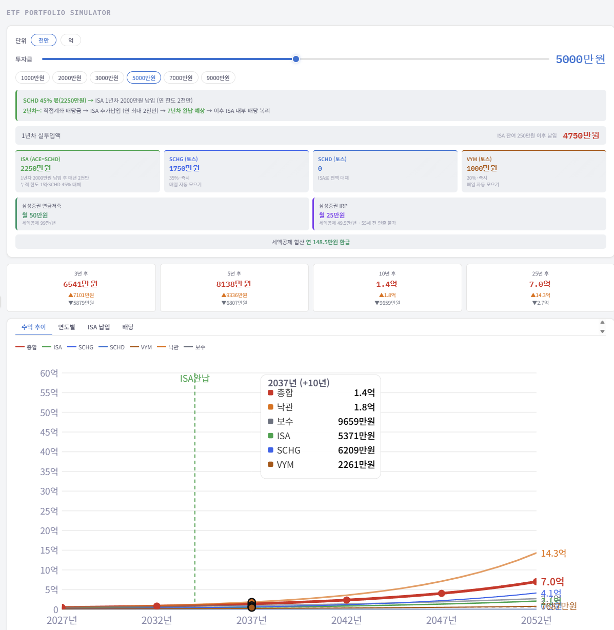 1. ISA: SCHD ์—ญํ•  ETF ๋‹ด์•„์„œ ๋ฐฐ๋‹น์„ธ ์ ˆ๊ฐ, ์—ฐ 2์ฒœ๋งŒ์”ฉ 1์–ต ์ฑ„์šฐ๊ธฐ